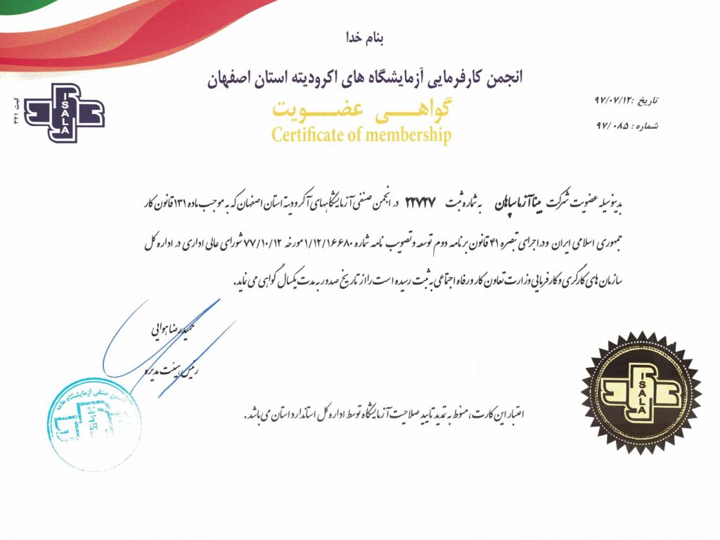 عضویت در انجمن کارفرمایی آزمایشگاهی اکرودیته استان اصفهان