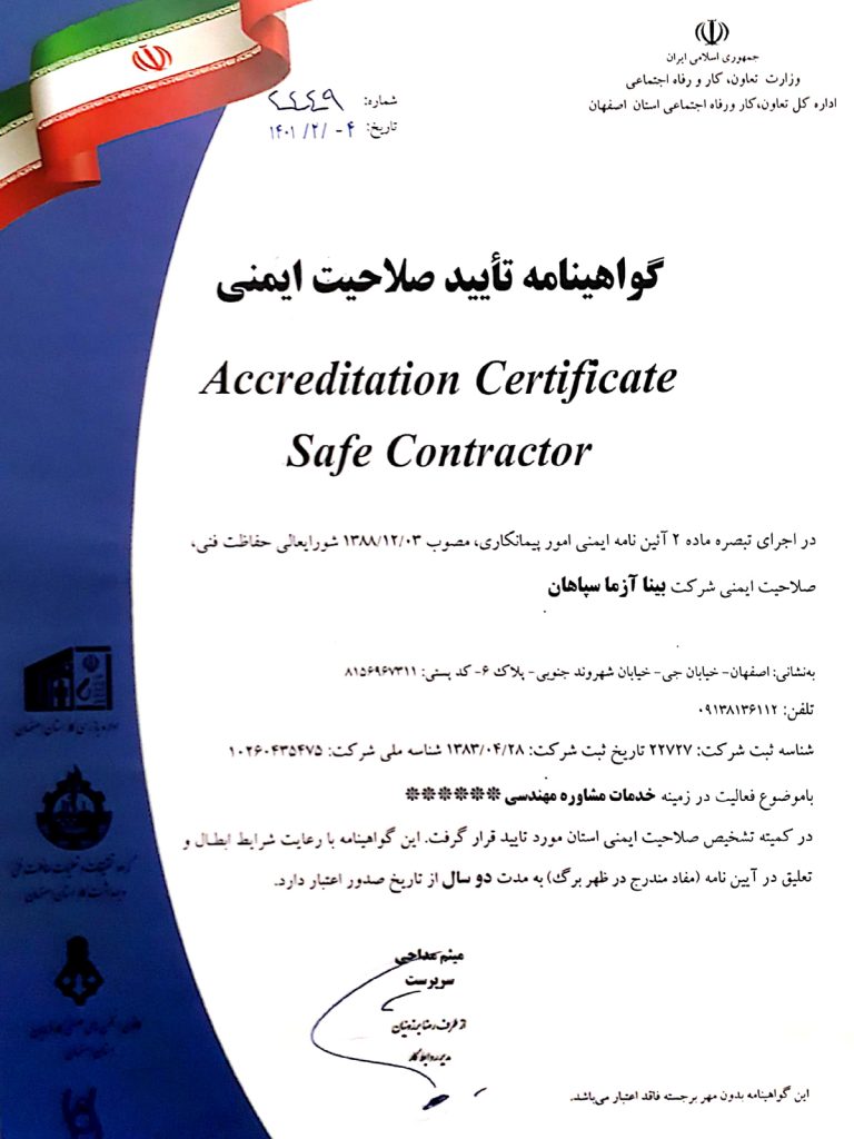 گواهینامه صلاحیت ایمنی از وزارت تعاون کار و رفاه اجتماعی